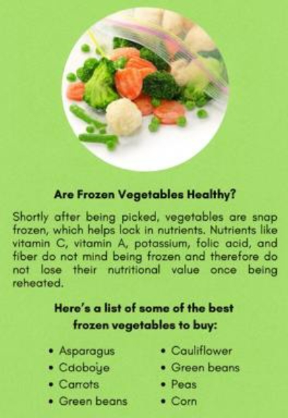Why: Same nutrients as fresh, often cheaper, no waste.