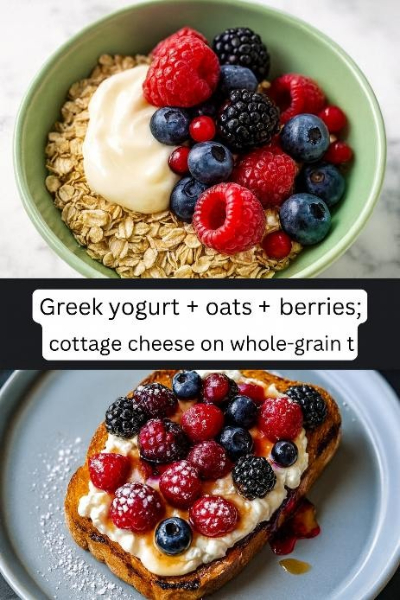 How to use: Greek yogurt + oats + berries; cottage cheese on whole-grain toast.
