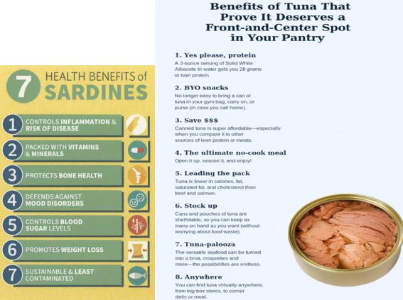 How to use: Tuna with mustard and celery on whole-grain crackers; sardines on toast with lemon.