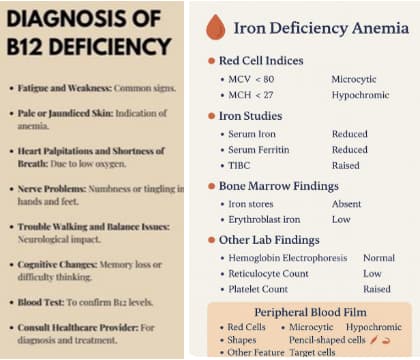 - CBC with differential, ferritin/iron, B12/folate to evaluate anemia and low energy. See anemia basics at Mayo Clinic. Mayo Clinic